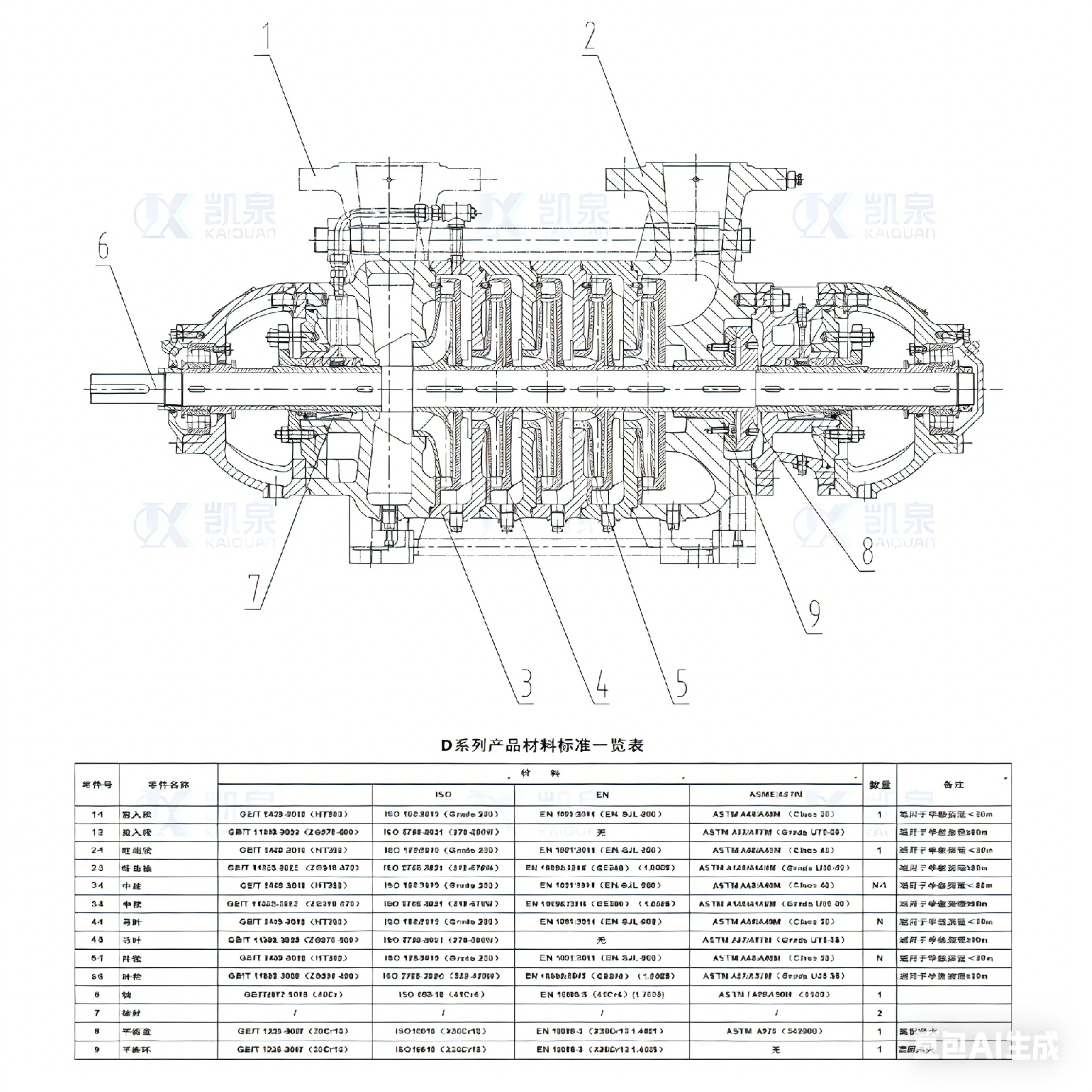 凯泉 DG48-50*5-316 锅炉给水泵 | 316不锈钢多级泵 | 原厂转子总成与售后服务核心关键词: 凯泉DG48-50*5、锅炉给水泵、316不锈钢多级泵、高压给水泵维修、转子总成、YE4节能电机。一、 产品概述与工况定位DG48-50*5-316 是上海凯泉针对中高压锅炉系统、工业冷凝水回收及高腐蚀性液体输送而设计的卧式多级离心泵。型号含义:流量 $48 m^3/h$,单级扬程 $50m$,5级串联(总扬程 $250m$),过流部件全 316 不锈钢材质。适用场景:电厂锅炉补水、化工厂工艺循环、医药级超纯水输送、高层建筑二次增压等。